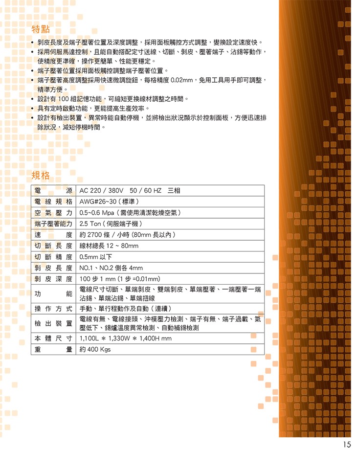 - Introduce the use of stripping tape hitting terminal machine specifications